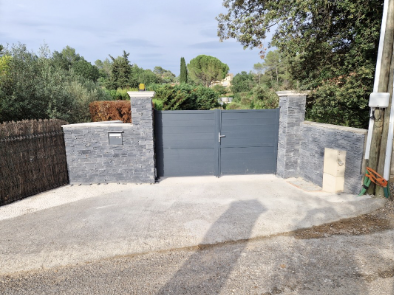 Pose de parement en pierre naturelle et application d’enduit de finition pour un rendu esthétique.
